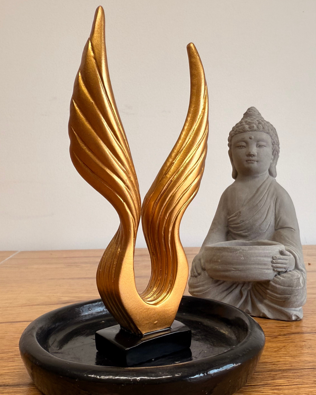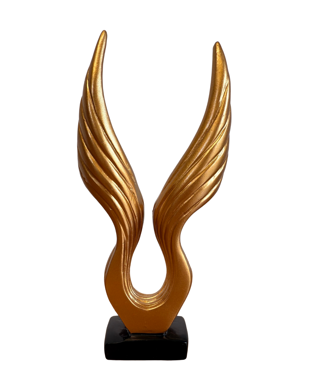Eleva la energía de tus espacios con esta pieza decorativa de Alas extendidas en resina color dorado, combina elegancia con un toque espiritual.