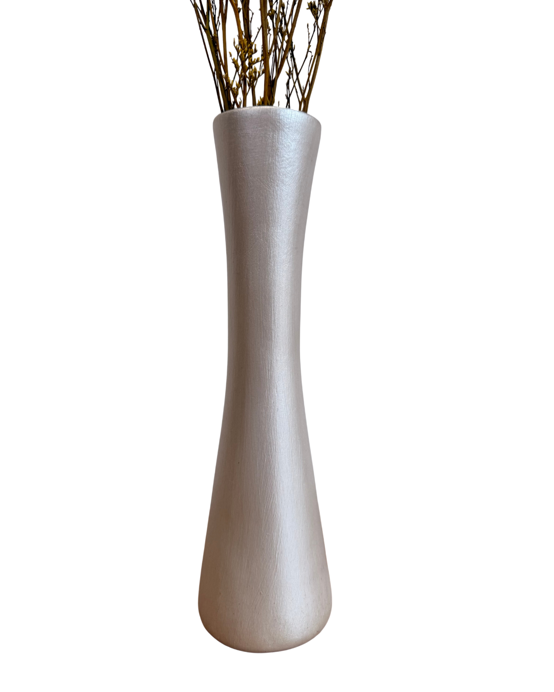 Agrega un toque sofisticado y de lujo a tus espacios con este florero decorativo en cerámica, tono blanco perla con acabado brillante.