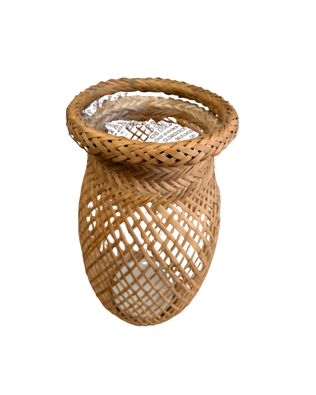 Este jarrón de mimbre hecho a mano es el complemento perfecto para decorar tus espacios con un estilo natural y auténtico. Su diseño tejido artesanalmente en fibra natural lo convierte en una pieza versátil y ligera que puedes usar como: Florero decorativo con flores secas, Base para ramos naturales, Elemento de diseño en estanterías o mesas de entrada Medidas: 36 cm de alto x 6.5 cm de diámetro aprox.
