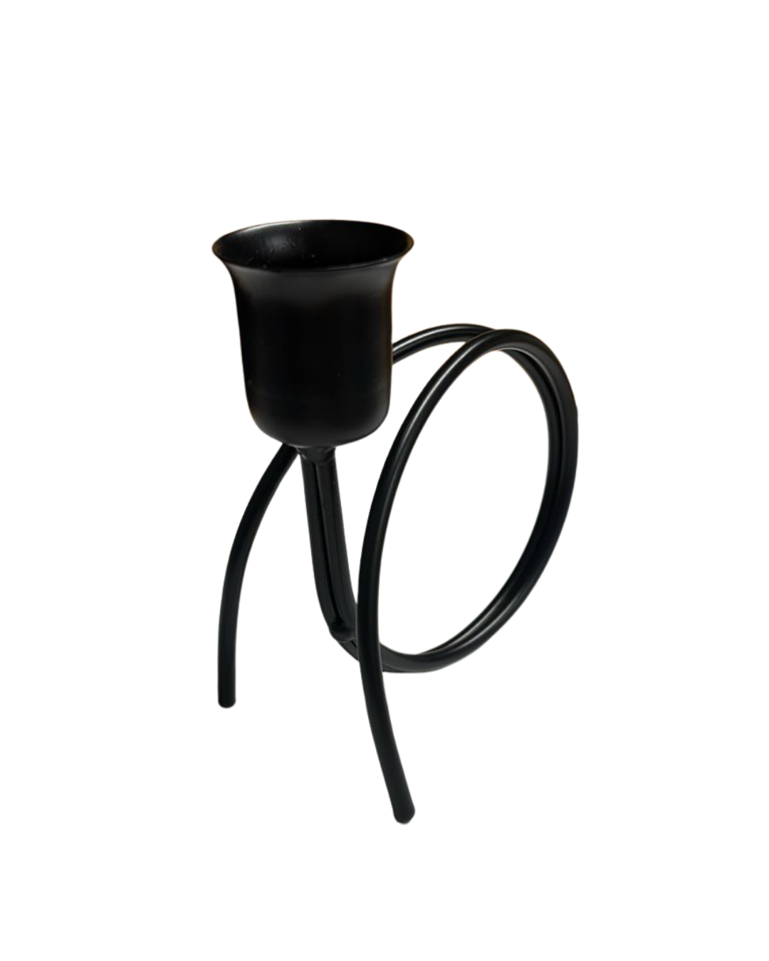 Agrega un toque de elegancia a tus espacios con este portavelas sencillo en hierro color negro. Su diseño minimalista y moderno lo convierte en una pieza decorativa versátil que se adapta a cualquier ambiente.
